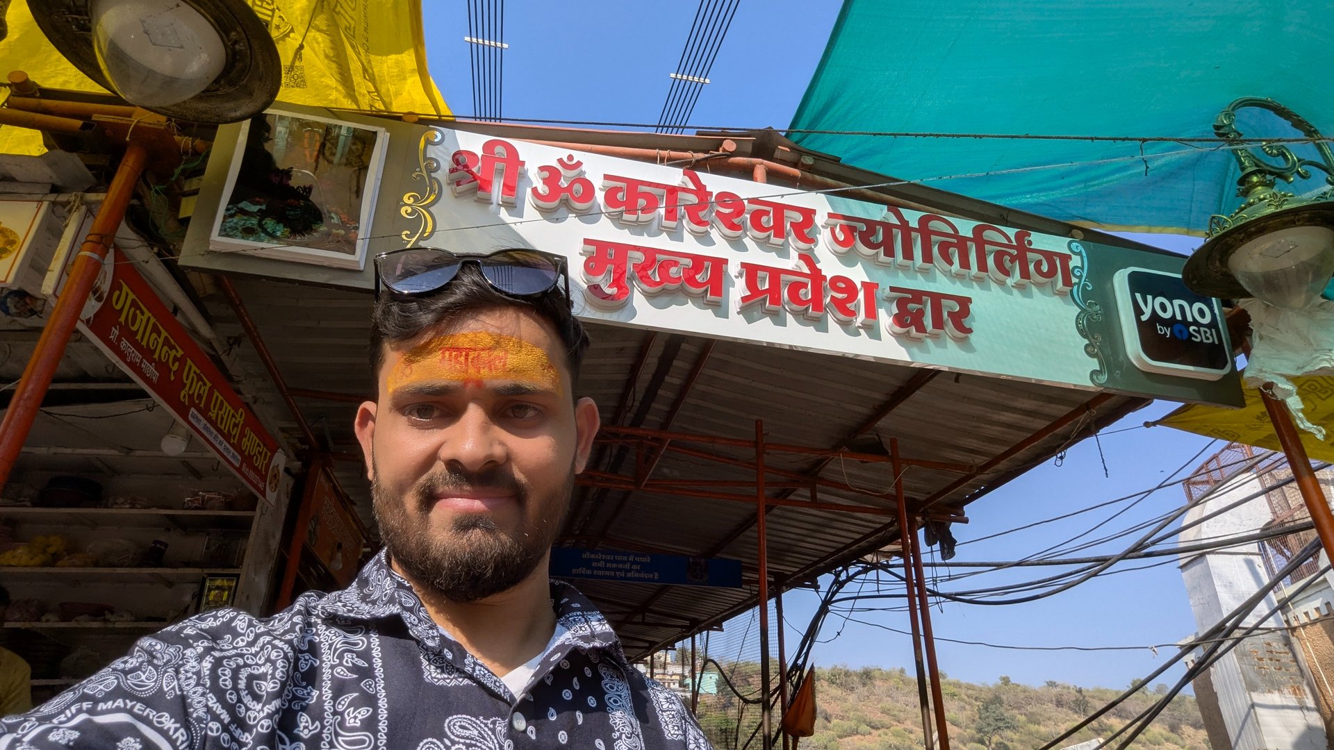 Omkareshwar Temple is one of the 12 Jyotirlingas dedicated to Lord Shiva and is located on an island called Mandhata (or Shivapuri) in the Khandwa district of Madhya Pradesh, India. The temple is situated on the banks of the river Narmada and holds great religious significance. The island is shaped like the Hindu symbol of "Om," which is considered sacred, hence the name Omkareshwar.